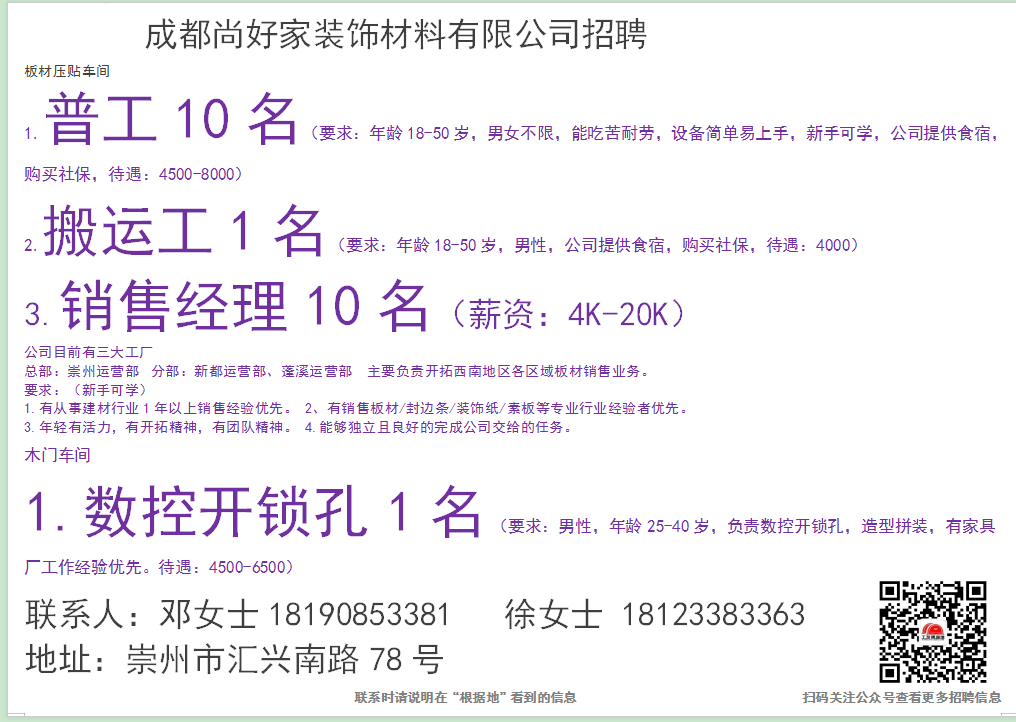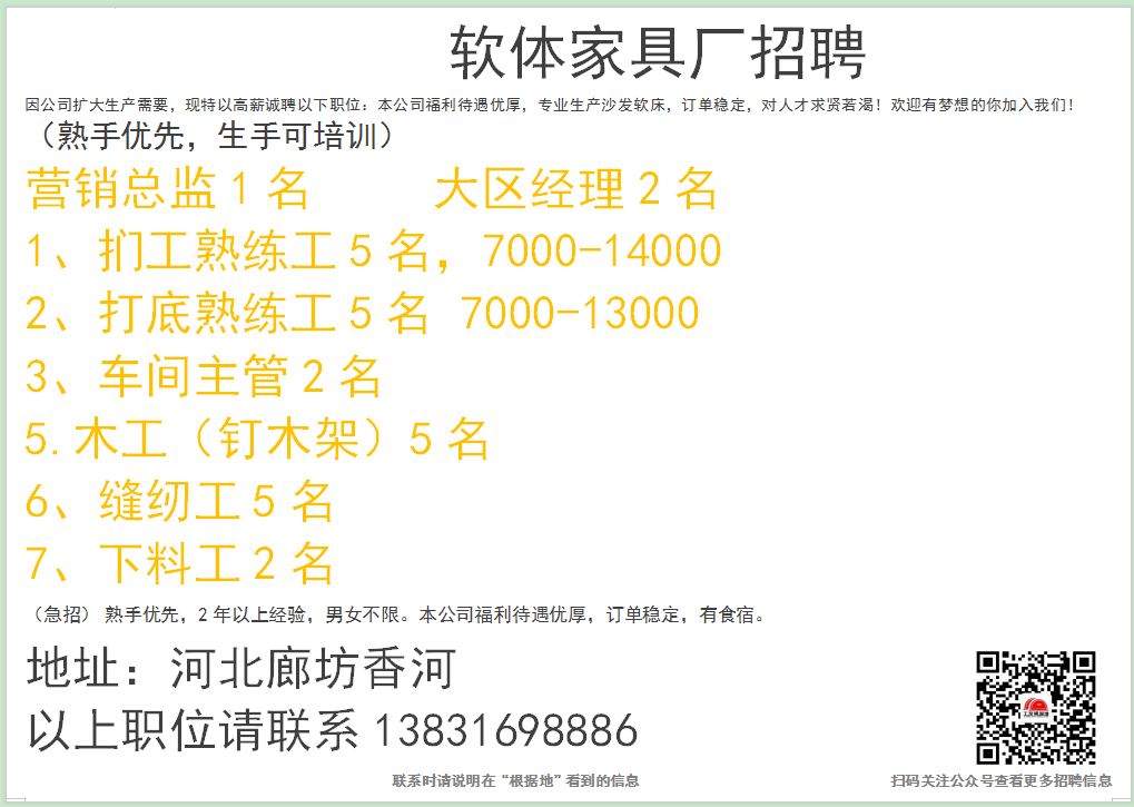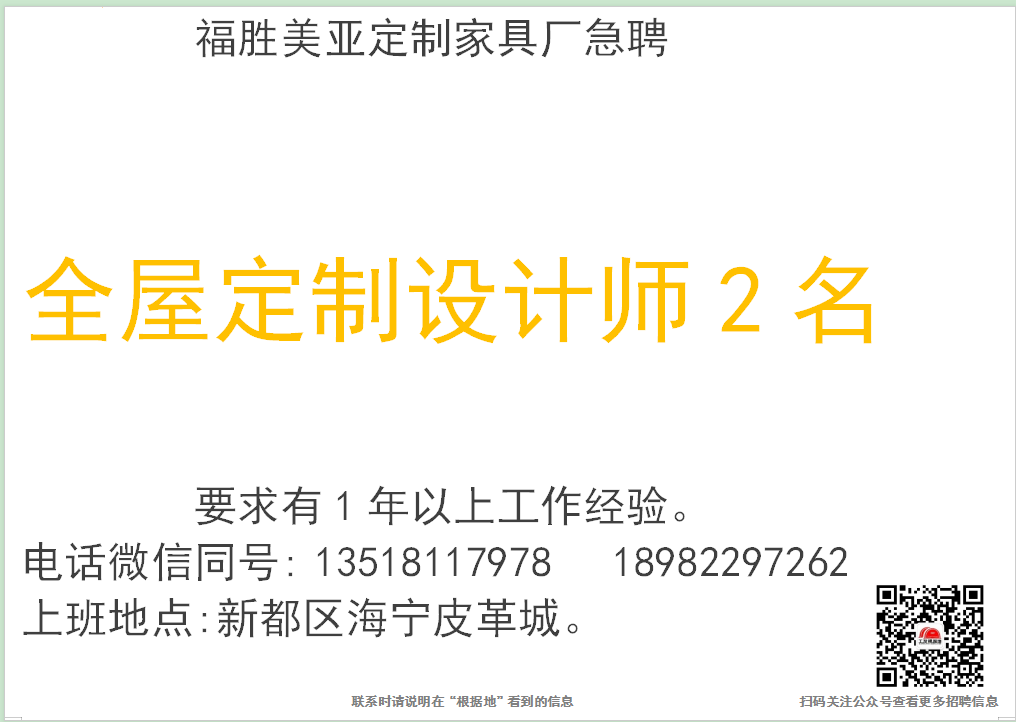 点击上面蓝色文字:根据地家居传媒,关注后,30秒内快速发布招聘信息和求职简历。每天海量招聘信息和求职简历等着你。
