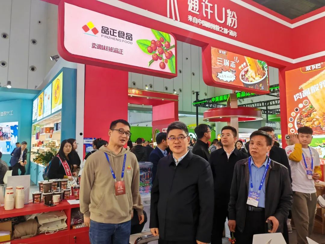 大会召开前,憨振强一行到我县酸辣粉展区巡馆,详细了解参展种类、洽谈情况等,丽星食品、谈小爱、淼林农业、寻味客、品正食品、双下巴等酸辣粉相关企业携明星产品参展。