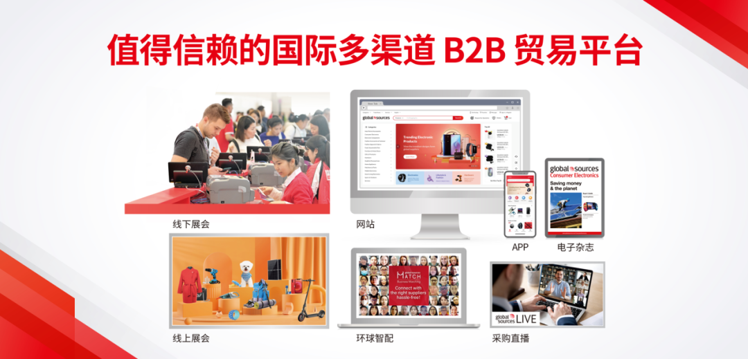 环球资源是一家深受国际认可,致力于促成全球贸易的多渠道 B2B 贸易平台。成立 50 多年来,公司通过 B2B 贸易网站 (www.globalsources.com)、App、展会、商业配对、专业贸易杂志、媒体、采购直播及峰会论坛等多种渠道连结全球诚信买家及已核实供应商,为其提供定制化的采购方案及值得信赖的市场资讯。