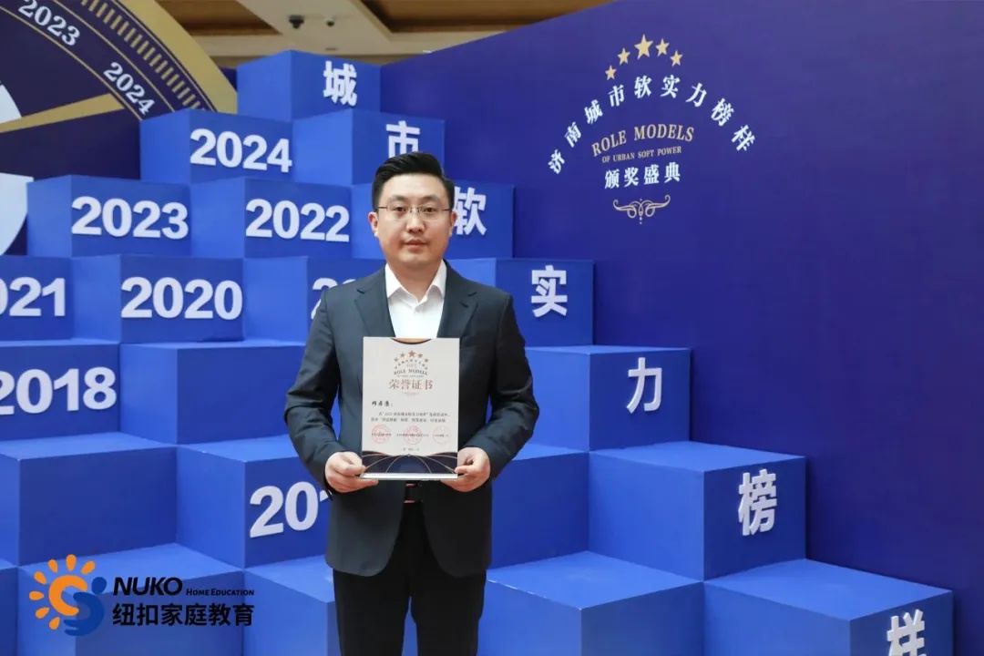 3月20日,由中共济南市委宣传部、济南市精神文明建设委员会办公室、山东商报联合举办的2023济南城市软实力榜样颁奖盛典在济南市举行,纽扣家庭教育集团凭借其独特的家庭教育理念和创新的服务模式,荣获“创意创新”榜样称号。纽扣家庭教育集团董事长穆居康代表集团出席典礼并领取“创意创新”榜样证书。