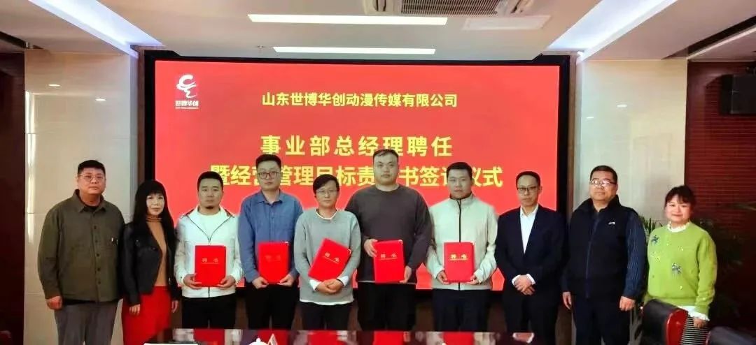 3月20日,世博华创在济南总部会议室举行了事业部总经理聘任暨经营管理目标责任书签订仪式。在济工作的全体员工参加了仪式,外派员工通过腾讯会议线上参会。在签约仪式上,董事长王振华与执行总裁王永超签订了年度经营管理目标责任书。随后,王永超与新聘任的五位事业部总经理逐一签署了2024年度的目标责任书。