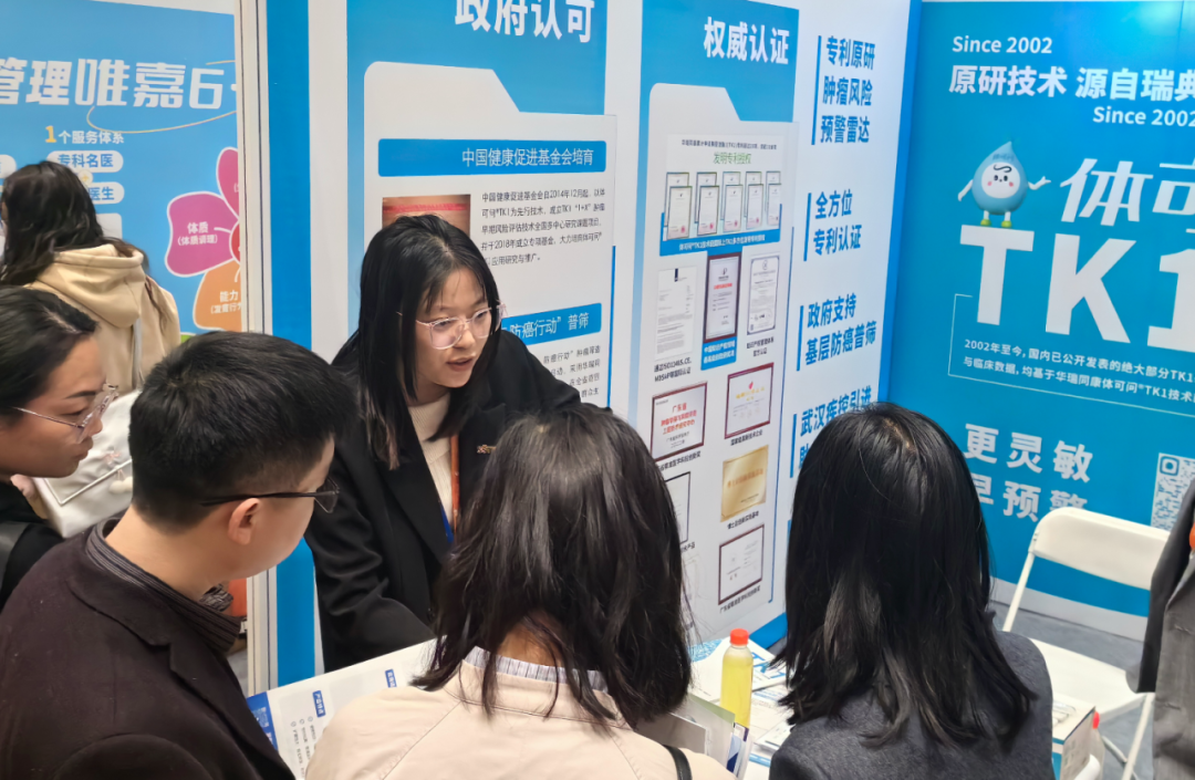 目前,华瑞同康正大力拓展面向非院线的健康消费者、企业用户的创新筛查服务模式。在展位上,体可问TK1技术的“癌症早筛适宜性特点”,以及适用于基层医疗大范围应用的特点,吸引了众多参会者的关注与垂询。