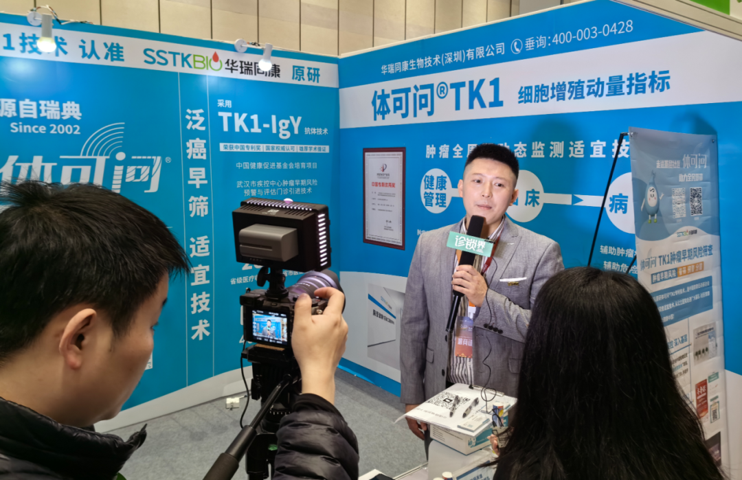 火热的咨询,吸引了主办方特邀行业媒体在现场对华瑞同康及体可问TK1技术进行了采访。工作人员详细介绍了华瑞同康近年来基于体可问TK1泛癌早筛技术,在专业医疗、基层医疗、健险融合、全民普筛等领域做出的诸多实质性举措。