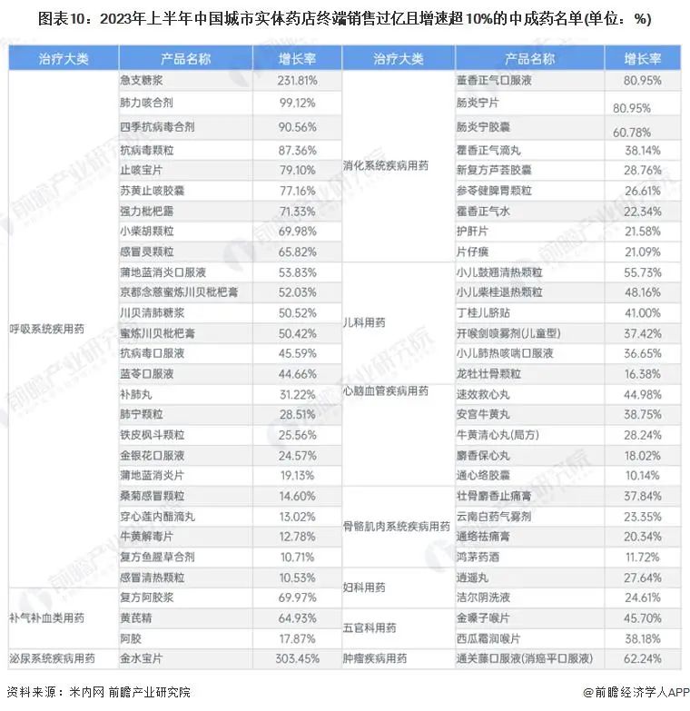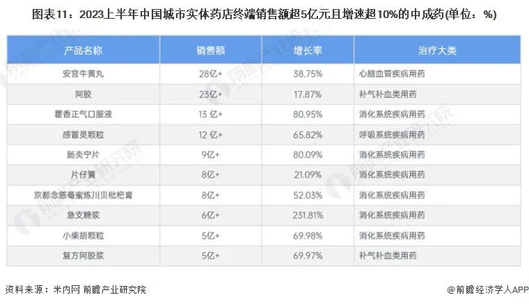 据米内网数据显示,2023 上半年有 113 个中成药在中国城市实体药店终端销售过亿,其中有 58 个为独家品种 ( 含独家剂型 )。