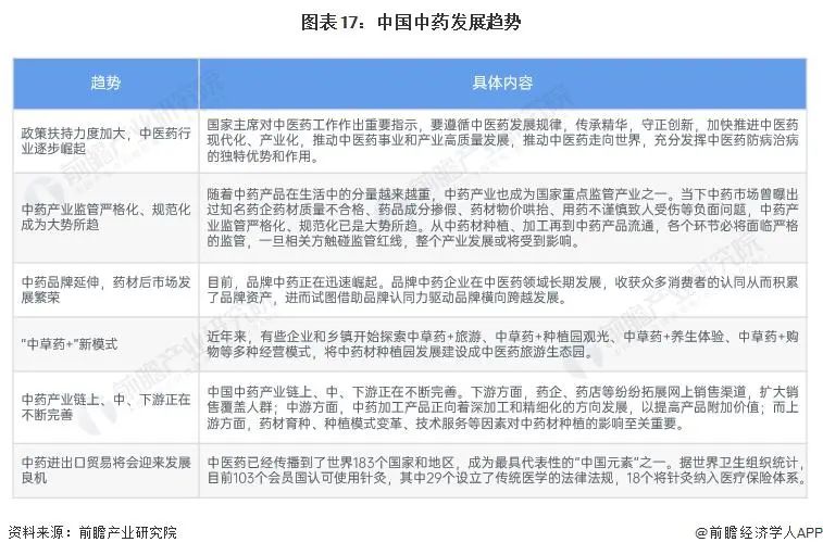 随着我国医保目录调整,中药的价值逐渐凸显,我国政策扶持力度亦加大。未来,重要发展有 6 大趋势: