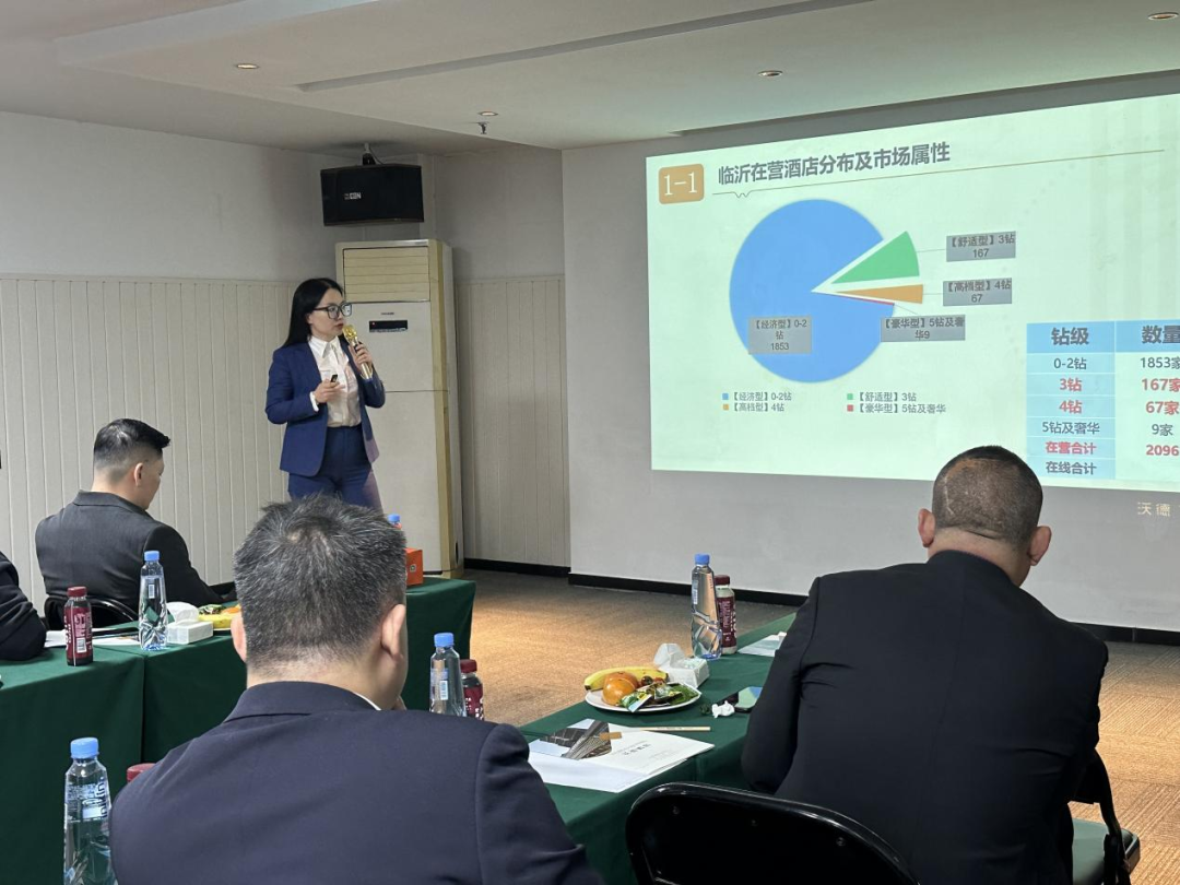 沃德酒店销售部总监窦玲玲就临沂在营酒店分布、市场属性、商旅客源、获客渠道、预定情况、连住需求等等多维度对临沂的酒店市场进行剖析。窦玲玲认为,根据2023年1-12月以商务属性客源进行画像分析:客源对于3-4钻酒店+早餐需求较大,占比分别为53.63%、86.25%;结合前端数据临沂市场目前三四钻酒店仅占比11%,因此临沂三四钻酒店在市场的空间比较大。