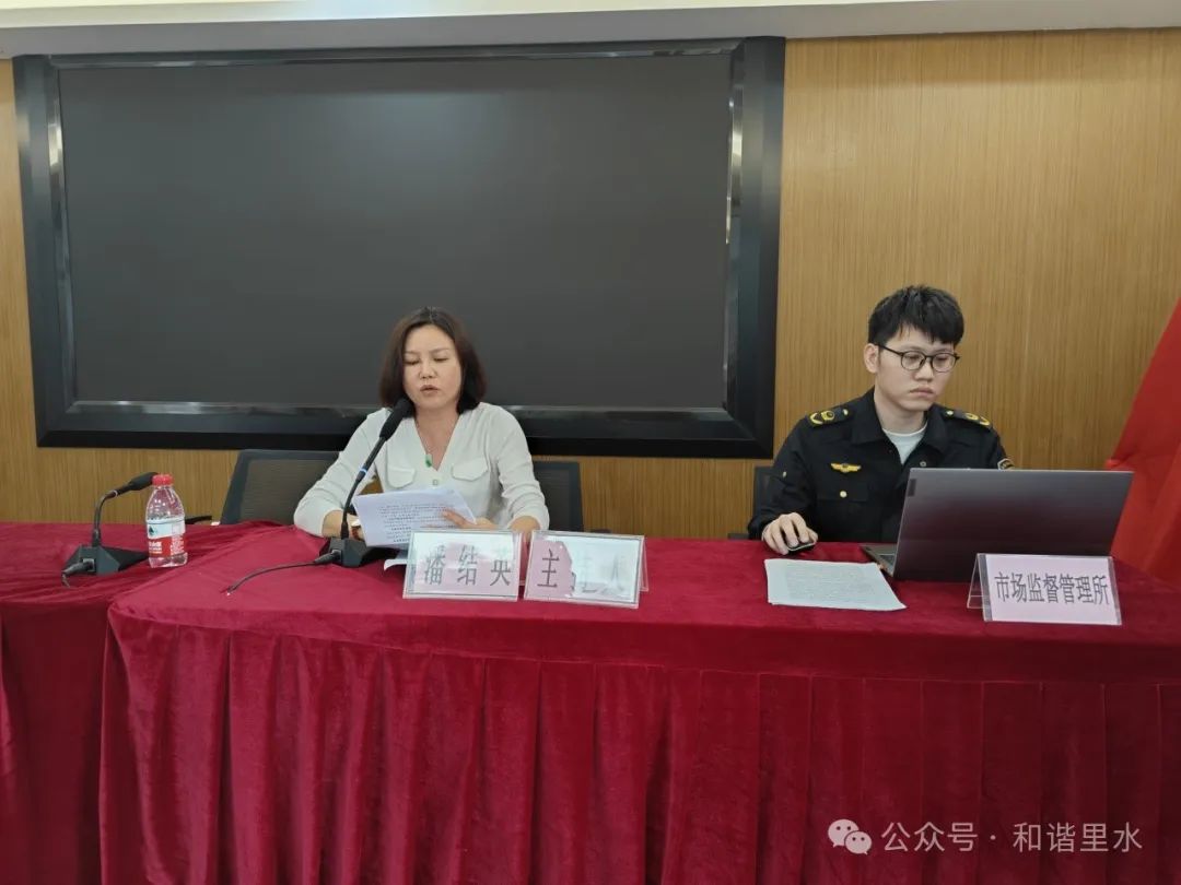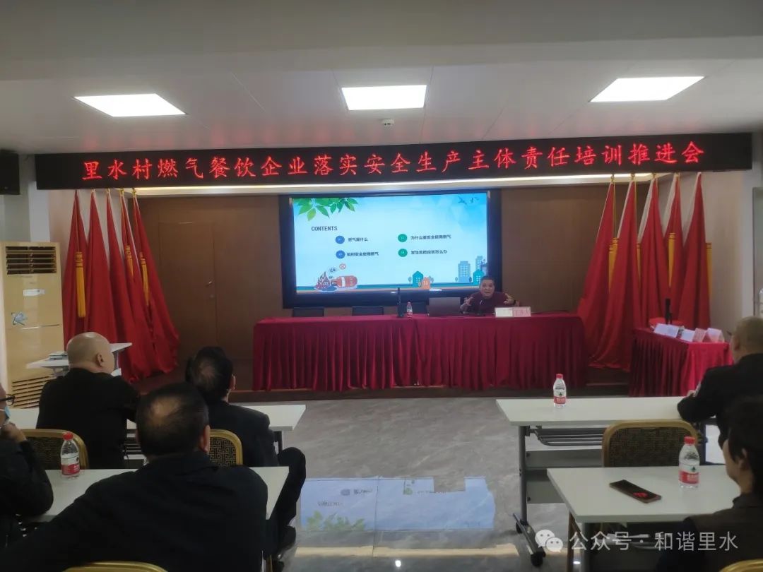 里水村党委委员潘结英向在场人员明确餐饮企业经营办证流程和餐饮业管理方案,她表示:餐饮环境卫生与人居环境息息相关,要求餐饮单位严格落实各项规章制度,做好餐饮卫生清洁维护工作,营造良好的营商环境,确保食品安全。