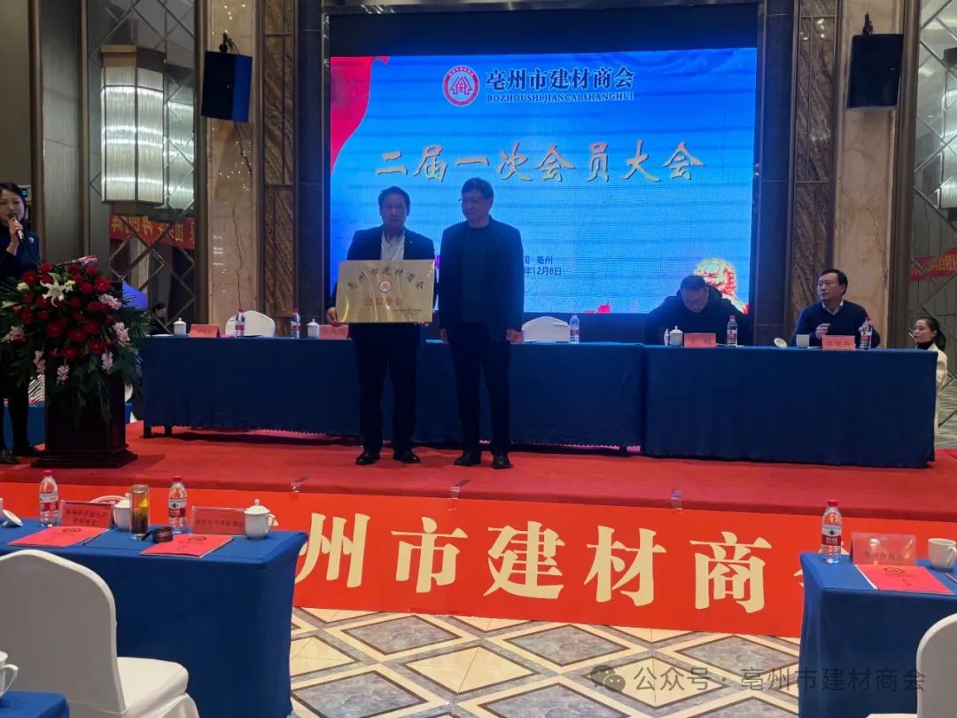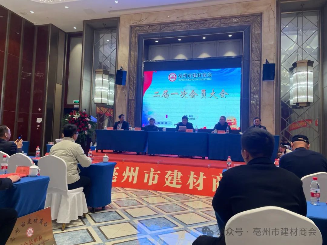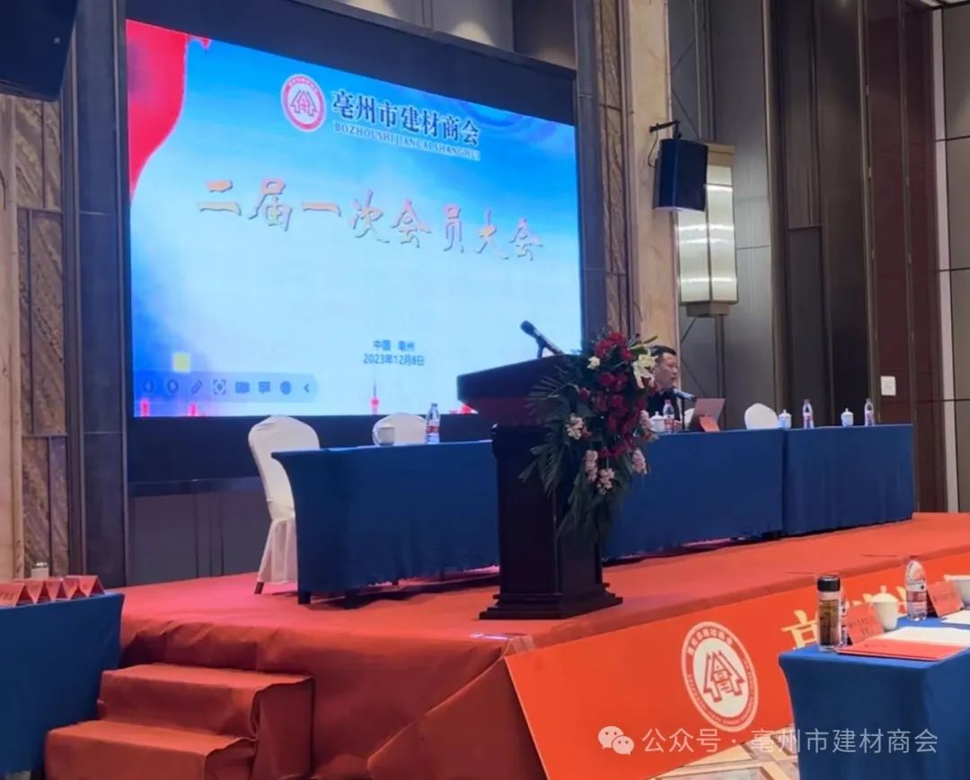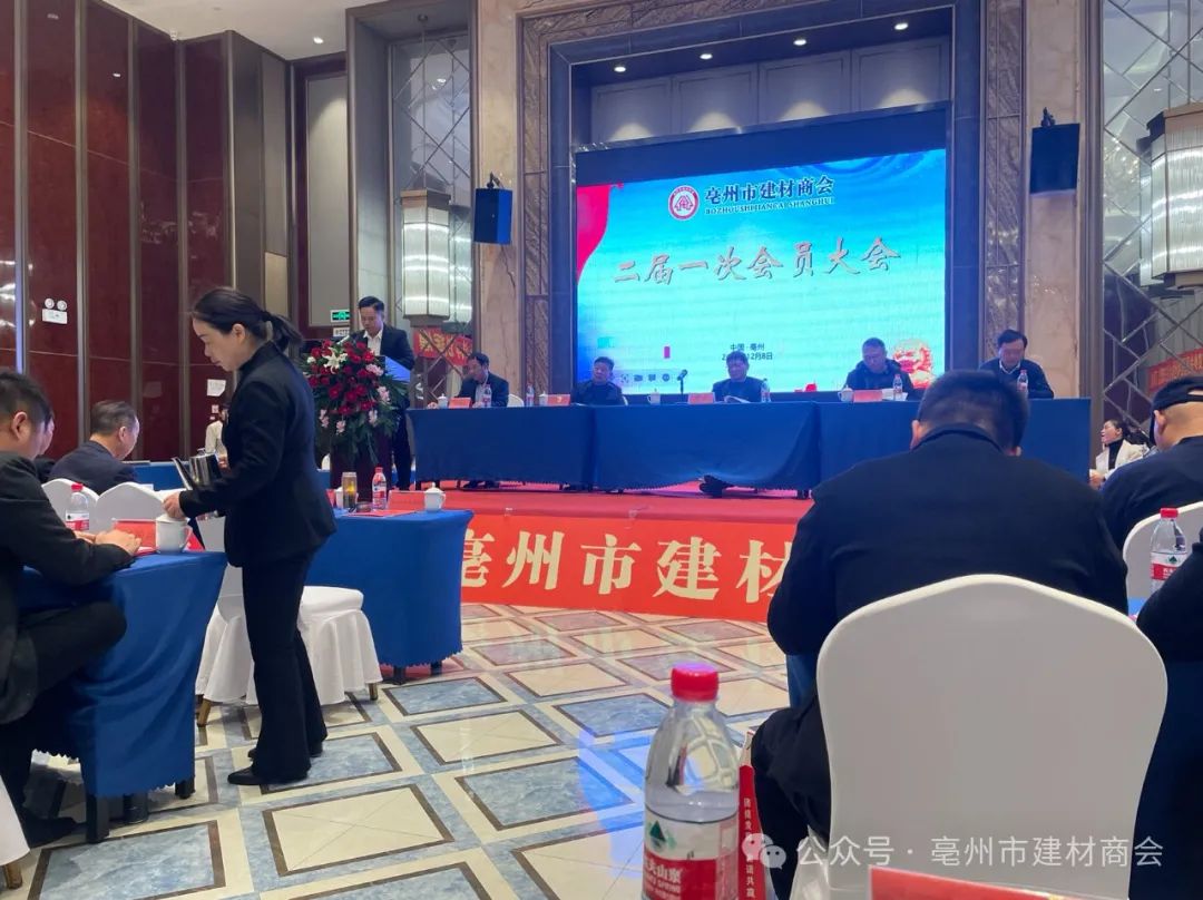 会议审议通过《亳州市建材商会章程(修正案)》、《亳州市建材商会会费管理办法》(草案)、《亳州市建材商会二届一次会员大会选举办法》,选举并产生亳州市建材商会二届理事会、亳州市建材商会二届监事会,选举贺增意同志担任二届理事会会长,选举冯芝贺、杨信、李海涛、张粮、段体友、刘振南、闫学明等同志担任副会长,选举田峰同志担任秘书长,选举李凯同志担任监事会监事长,选举唐彪、张金保同志担任监事。
