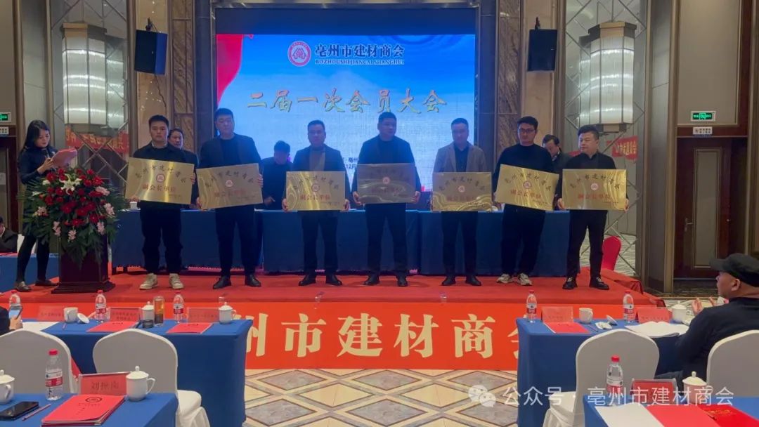 中共亳州市委统战部、市工商联、市民政局、市新的社会阶层人士联谊会、古井集团、安徽省装饰建材商会、淮北市建材商会、亳州市商会、市汽车后市场商会、市中药材协会、市农业生产资料商会、市商贸企业商会、市浙江商会、市福建商会、市钢材商会、市牡丹协会等单位发来贺电。
