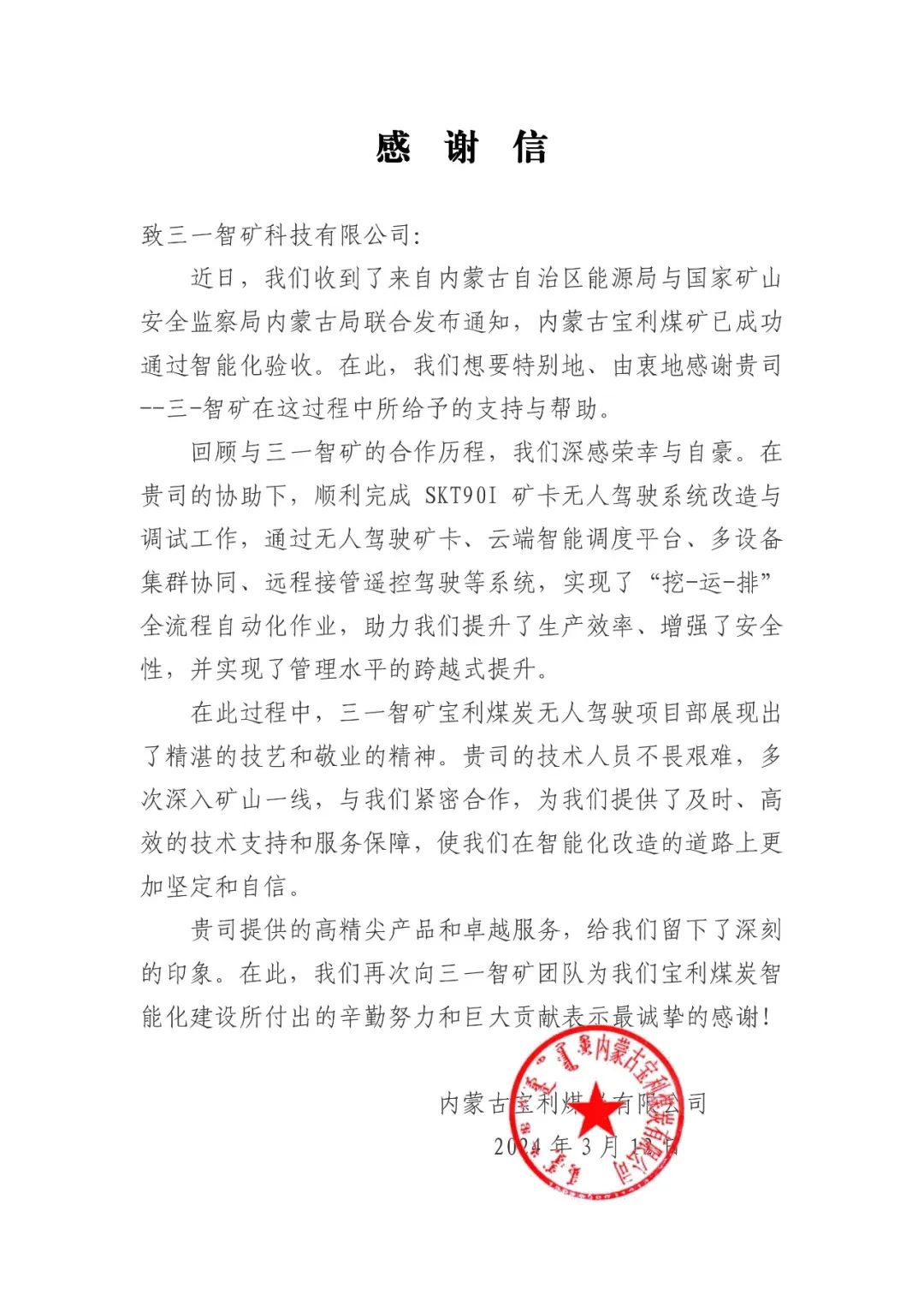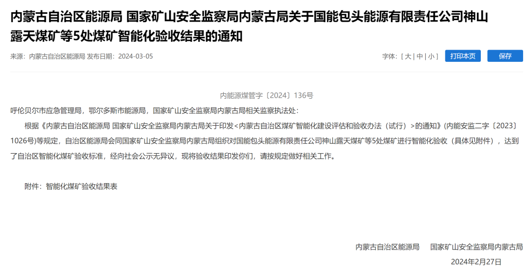 近日,内蒙古自治区能源局与国家矿山安全监察局内蒙古局以内能源煤管字〔2024〕136号文件发布通知,五处煤矿成功通过智能化验收,正式迈入智慧矿山的新纪元。其中,内蒙古宝利露天煤矿和呼伦贝尔东明露天矿两大煤矿的智能化改造得到了三一智矿的全面支持。