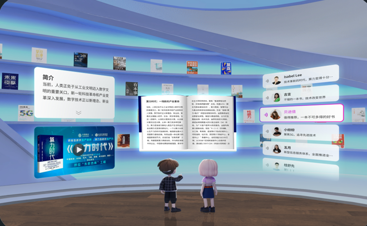 三是顺应内容阅读场景的历史性跨越。通过5G、XR、AI、跨屏互联等技术,打造连接文化场馆、生活空间的元宇宙书房,为用户提供超越线上线下场景的阅读服务,体验无所不至的阅读体验。目前已与杭州图书馆、凤凰出版集团、鼓浪屿、浙江文学馆、吉林人民出版社等合作推出定制化的元宇宙书房,有效拓展空间、延伸时间、融合体验、赋能场馆。