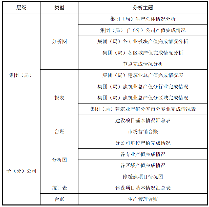表3 生产管理报表、分析系统管理架构