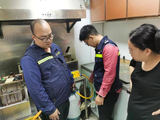 针对检查中发现的安全隐患,工作人员现场给予整改指导,责令相关单位进行整改。同时,检查人员与餐饮单位的安全负责人进行沟通交流,建议其要经常开展防火安全自我巡查,确保燃气使用安全。