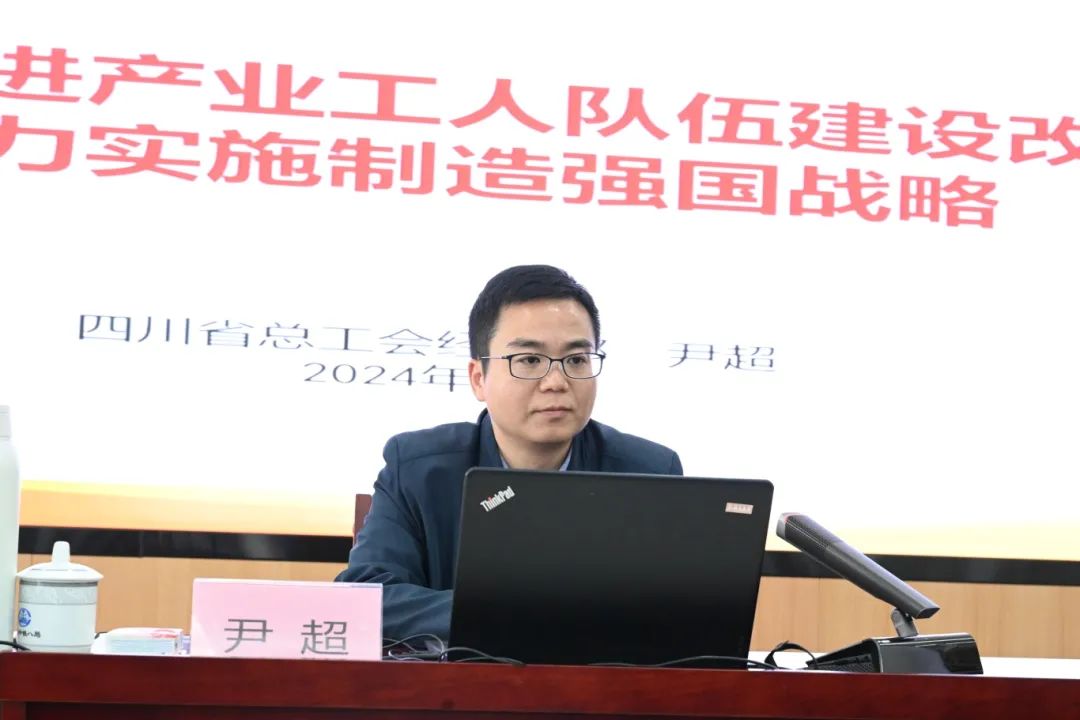 ▲四川省总工会经济部副部长尹超以《深入推进产业工人队伍建设改革助力实施制造强国战略》为题授课