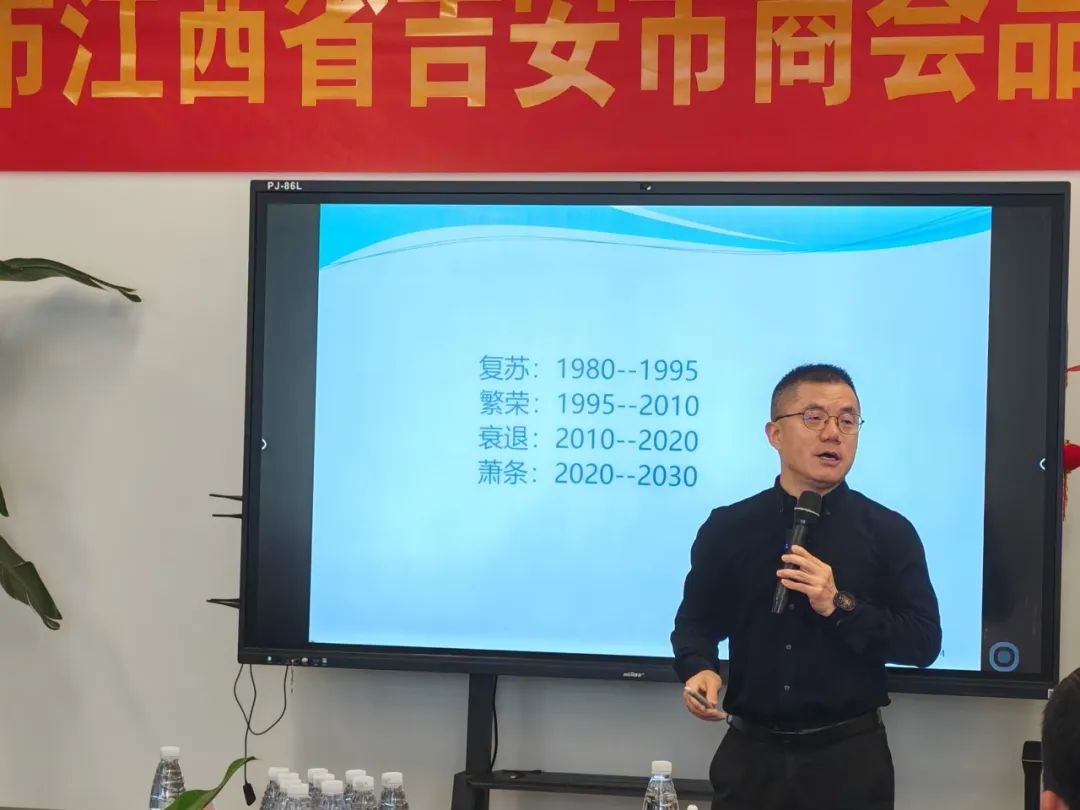 首期《大家谈》的主讲嘉宾是佛山市江西省吉安市商会会长、佛山市江西商会执行会长、广东港博电力科技有限公司董事长皮秋如,为大家带来的分享主题是《站在2030年看今天——聊聊康波周期》。《大家谈》是佛山市江西省吉安市商会重点打造的三大品牌栏目/活动之一,是以传播会内优秀会员思想、专业知识,有一定框架体系的内容输出平台,是为会内成员带去开阔眼界,触达多元知识界面,了解会员深度的交流、学习栏目/活动;也是为会内成员提供展示自我,推介企业和企业家品牌的开放平台。