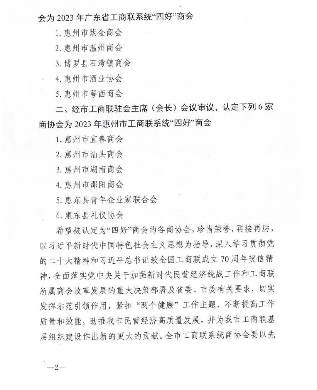 【商会简讯】我会荣获“2023年度惠州市'四好'商会”荣誉称号