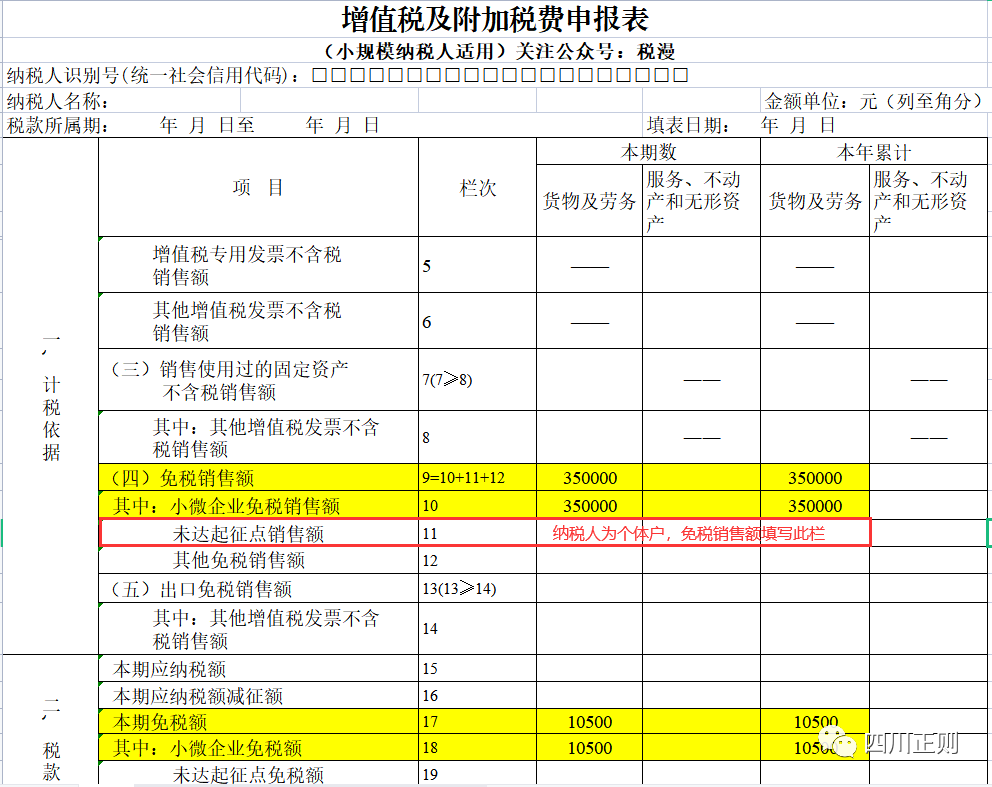 免征增值税的全部销售额等项目应当填写在《增值税及附加税费审报表(小规模纳税人适用》“其他免税销售额”栏次及《增值税减免税申报明细表》对应栏次