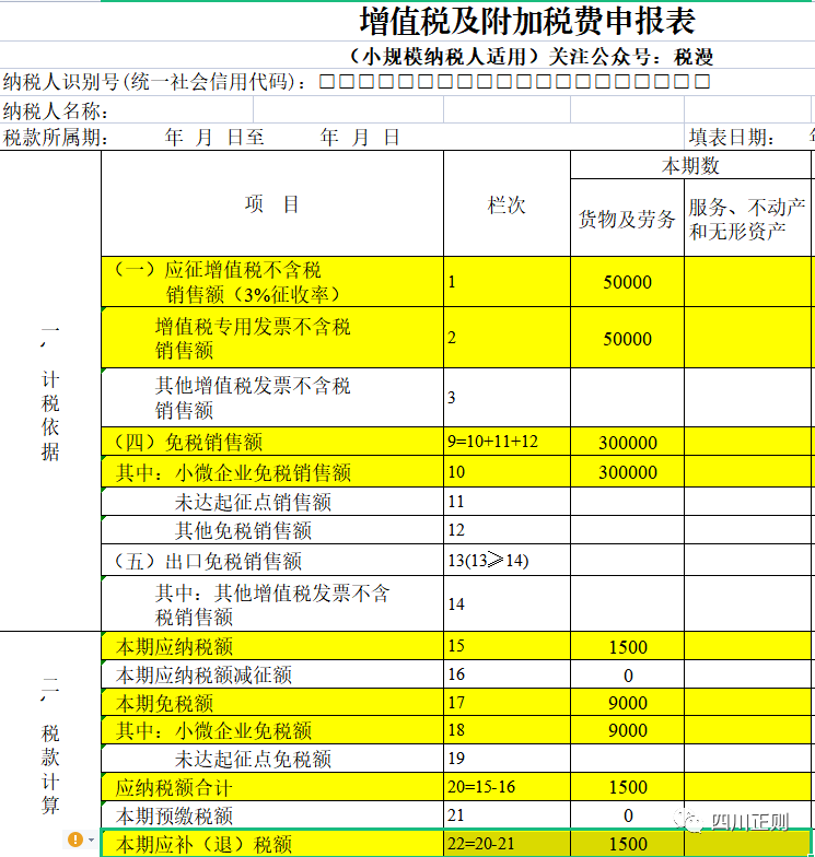 开具免税普票销售额:300000元,开具3%专用发票销售额(不含税):50000元。