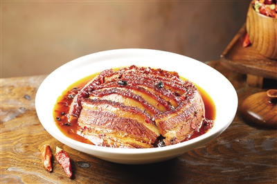 王栏树“豆豉扣肉”,同样由著名湘菜大师罗继湘亲自指导出品,历经烧毛、切肉、焯水、刷蜜、油炸、浸泡等31道工序匠心研制:肉片不可切太薄,薄则易碎;也不可切太厚,厚则无味。刀锋过处,张力十足的五花肉迎刃绽开……从食材挑选到调味,从对火候的掌握到对时间的精准把控。把关于烹饪的巨细臻于完美,才能自信于食客,亦无愧于心。