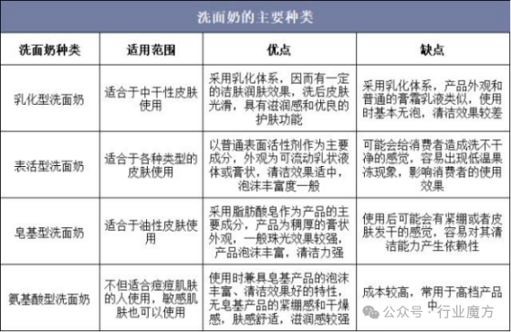 2、洗面奶的分类