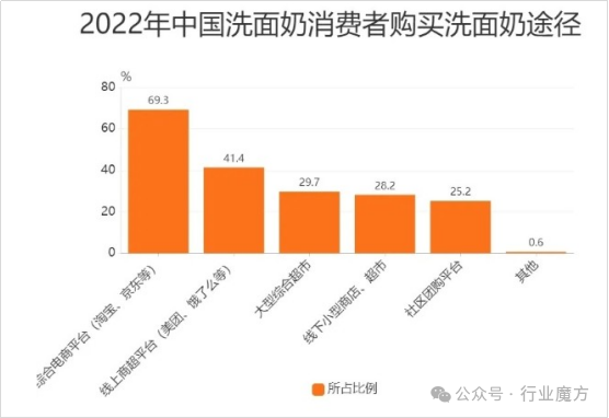 1、2022年中国消费者购买洗面奶途径分布情况
