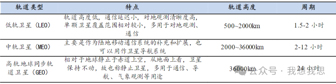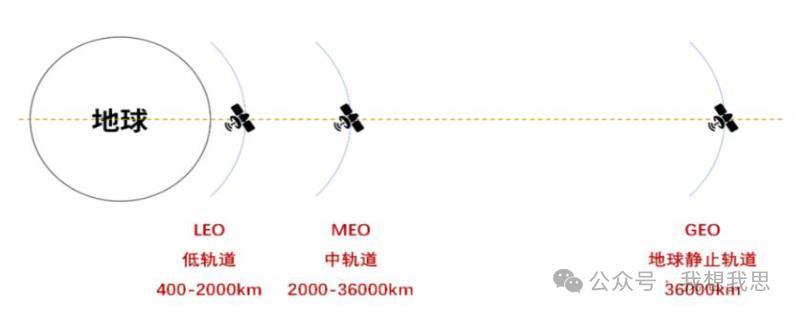 按照卫星轨道高度的不同,卫星可以分为低轨卫星(LEO)、中轨卫星(MEO)和高轨地球同步通信卫星(GEO)。LEO 卫星轨道高度 500km~2000km,MEO 卫星轨道高度2000km~36000km,GEO 卫星轨道高度为 36000km。
