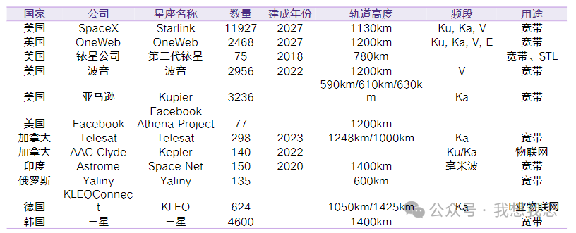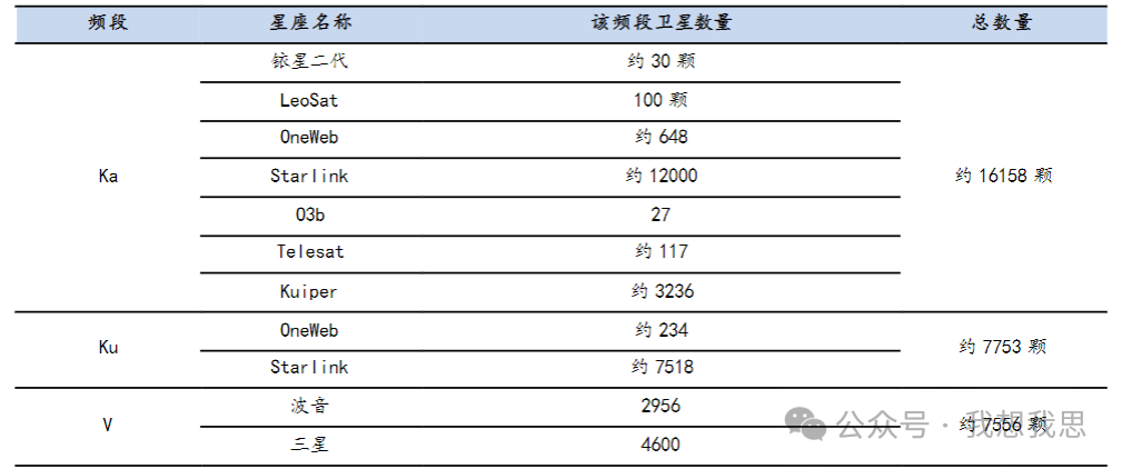 图 13 国外主要低轨通信卫星频谱和数量统计