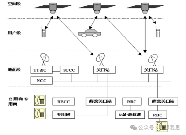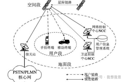 卫星:位于地球上空,负责接收和发送信号,并作为信号中继站将信号从一个站点转发到另一个站点。
