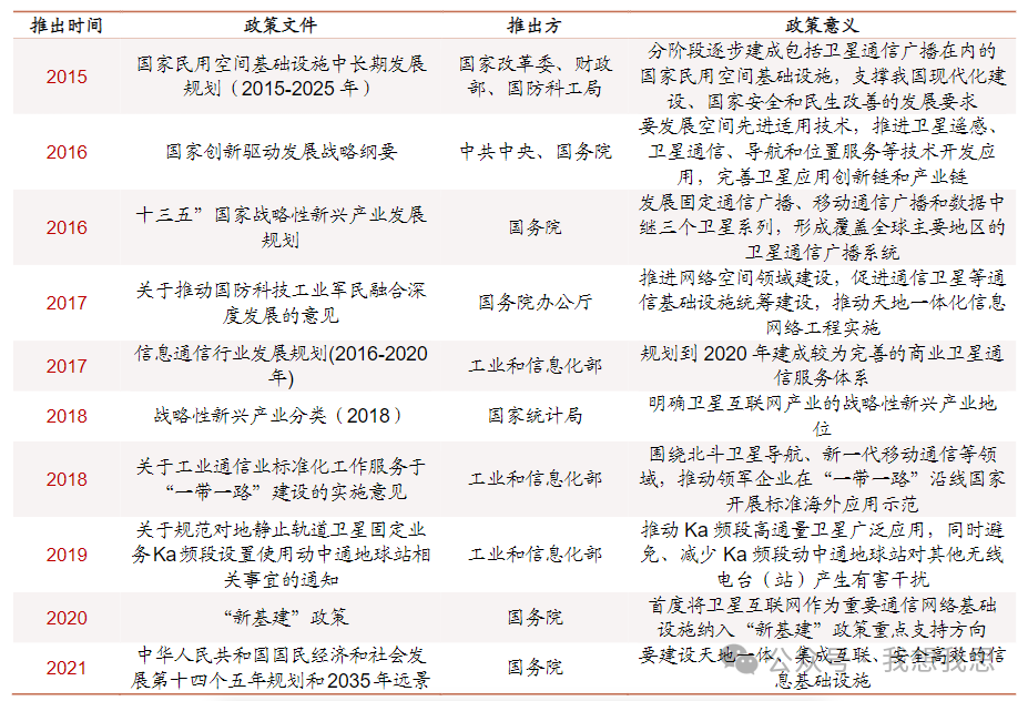 我国已将卫星通信作为关键核心技术研发和信息产业发展的重点领域,近年来我国出台多项通信卫星产业政策,积极布局低轨卫星领域,鼓励卫星通信应用创新,在航空、航海、公共安全和应急、交通能源等领域推广应用。