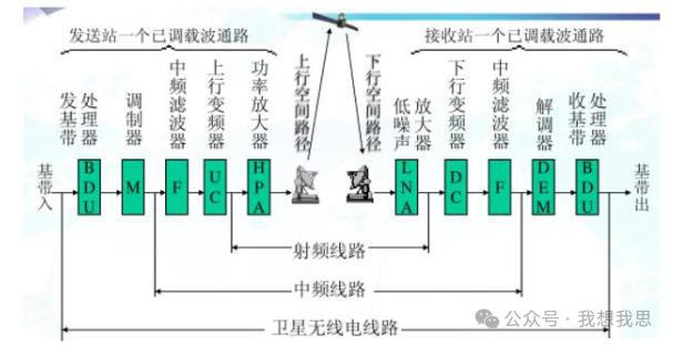 信号传输:通过卫星传输信号,包括上行链路(从地面站到卫星)和下行链路(从卫星到地面站)