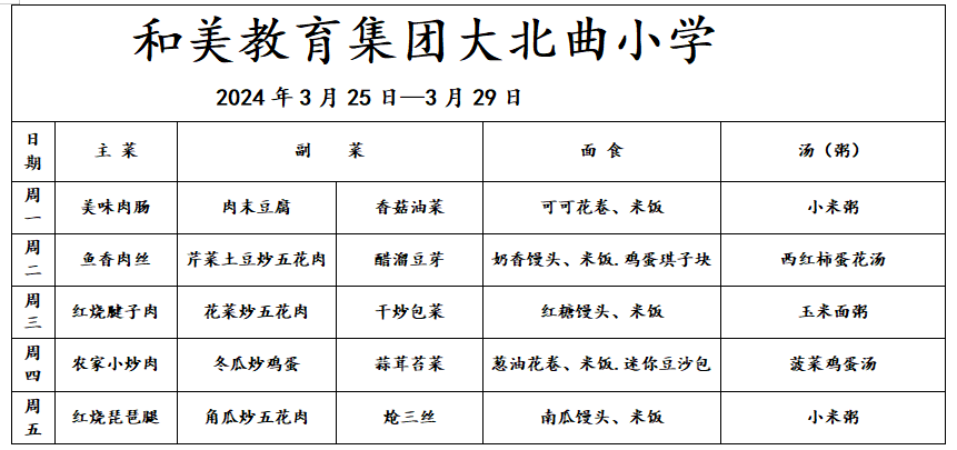 【校园食谱】“食”刻相伴—和美教育集团大北曲小学第5周食谱