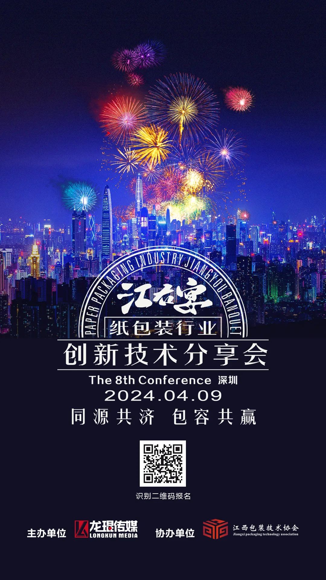 目前,2024第八届纸包装行业创新技术分享会&江右宴的筹备工作已经启动,酒店、议程、嘉宾、礼品赞助等各方面事宜正在落实。我们欢迎各行业人士踊跃报名(直接扫描下方二维码即可,填写报名表后,工作人员将会与您对接),共同相聚于美丽的深圳。