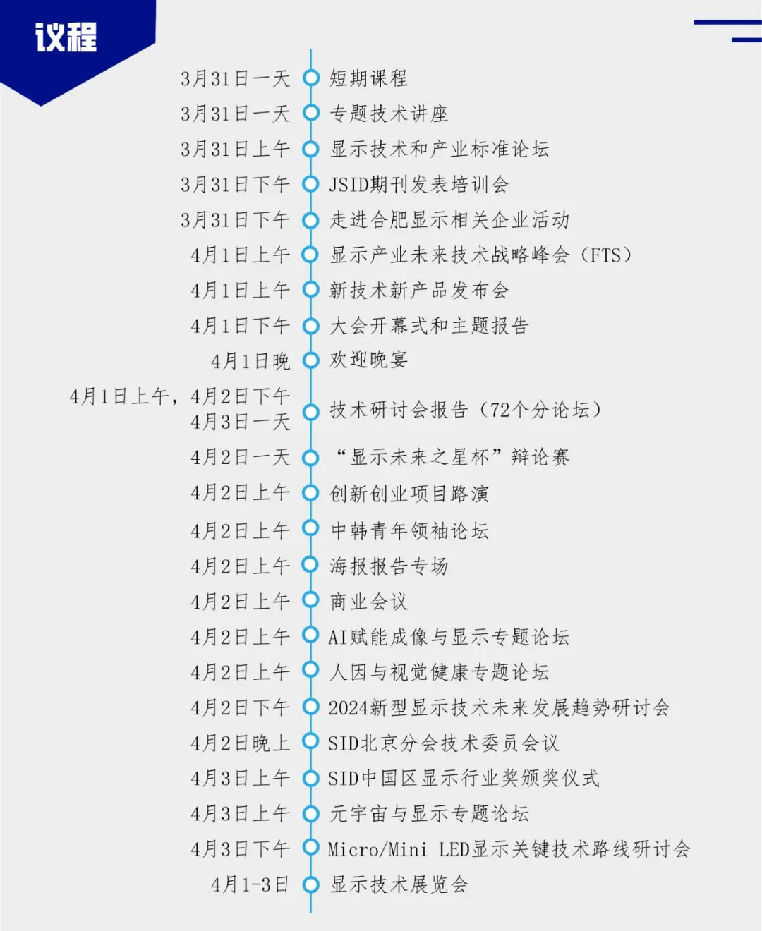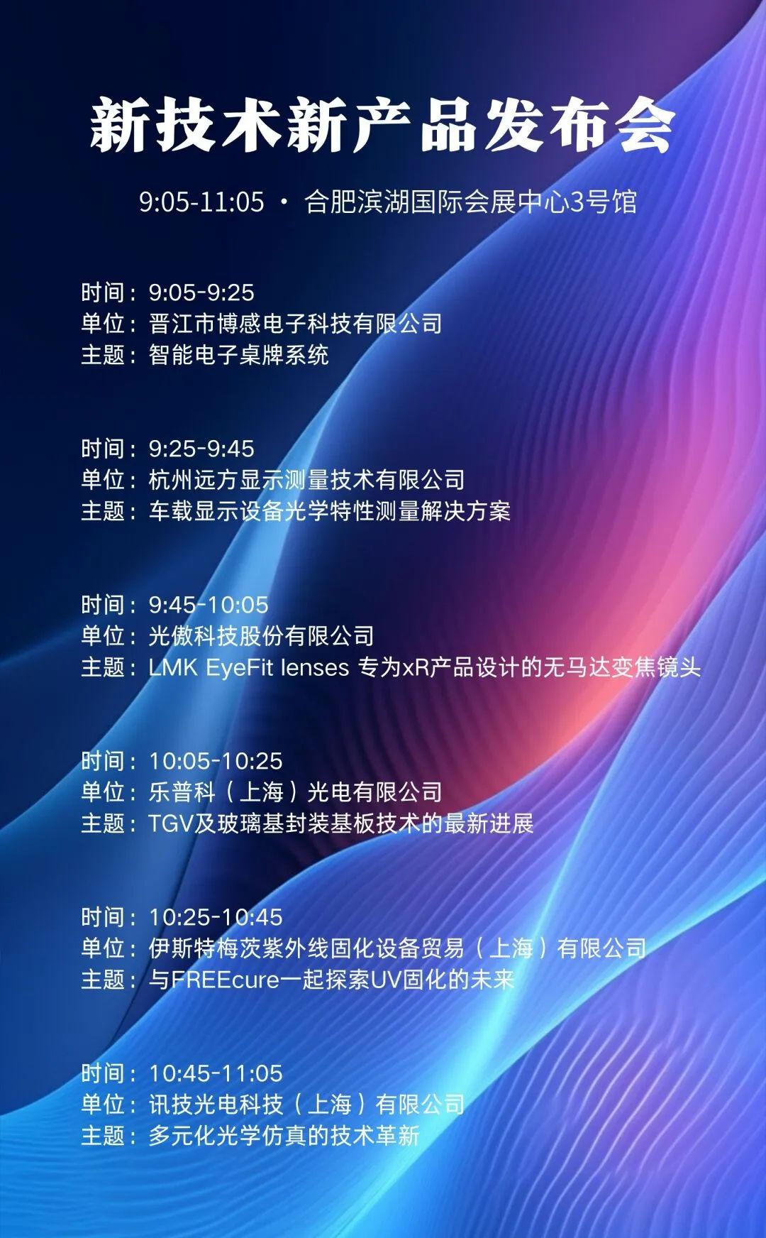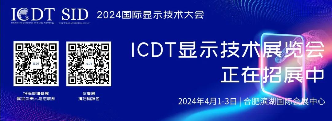 2024国际显示技术大会(ICDT)将于2024年3月31日-4月3日在合肥滨湖国际会展中心举行。同期举行的国际显示技术展览会上,新技术新产品发布会将带着各大单位的最新产品/技术登场。2024年4月1日上午,将会有6家企业发布并介绍其最新产品技术。