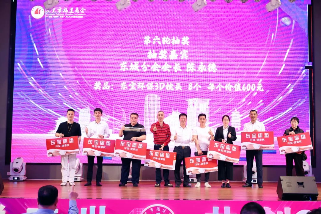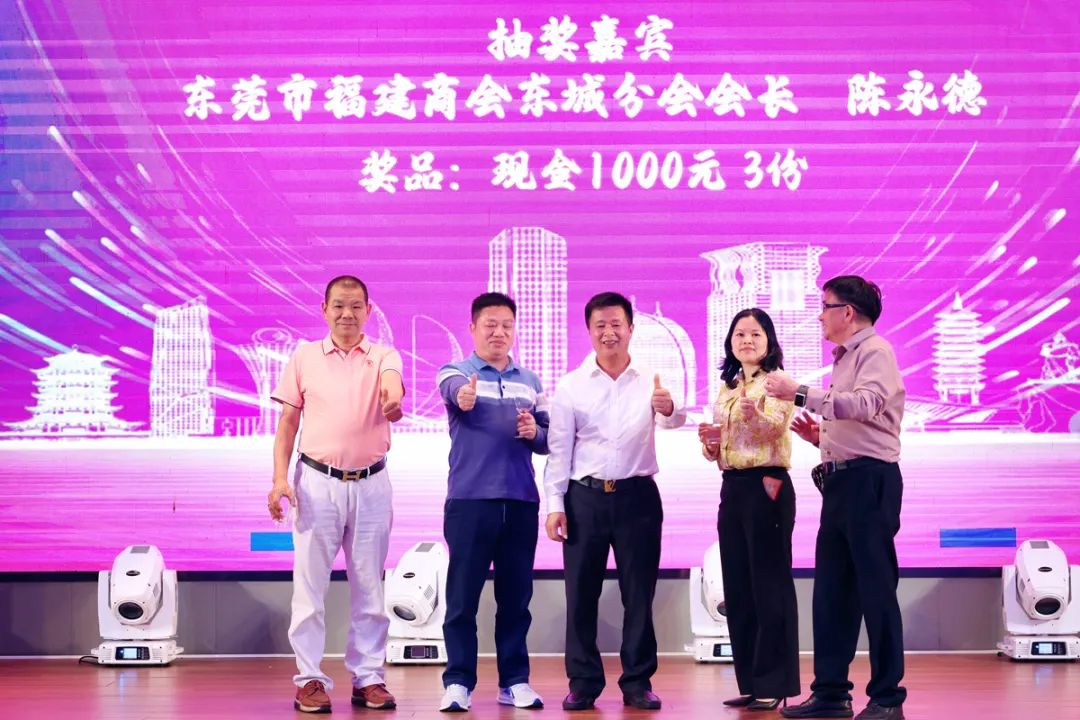 △图为东莞市福建商会领导和东城办事处(分会)领导班子成员上台祝酒。