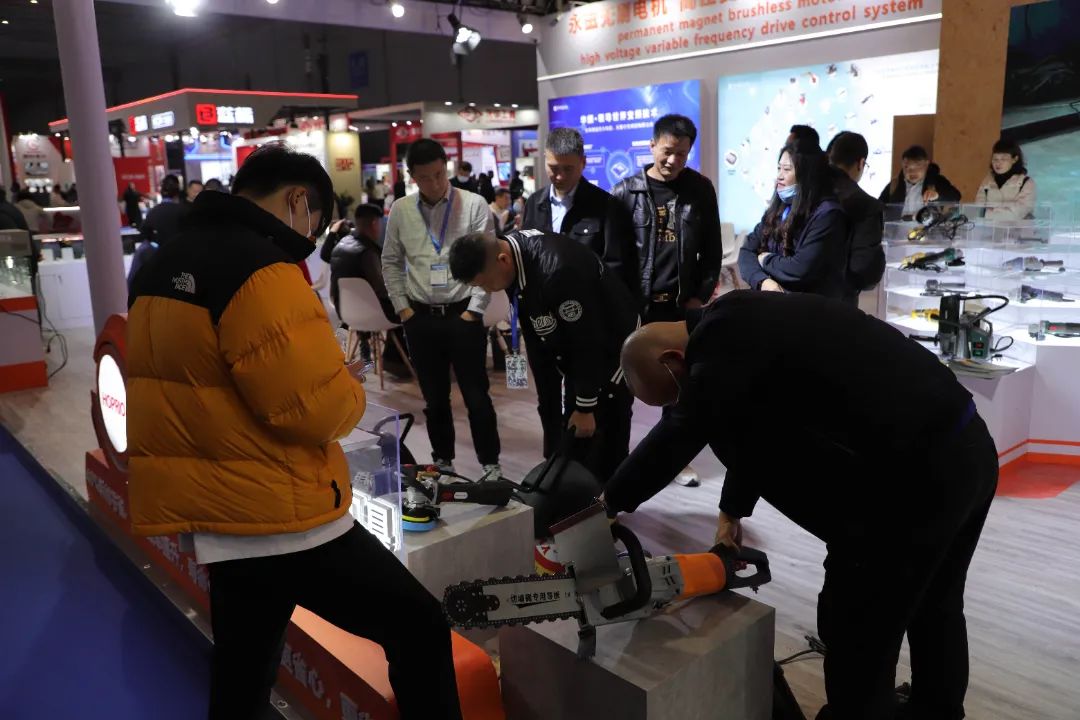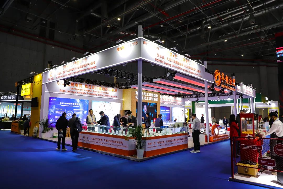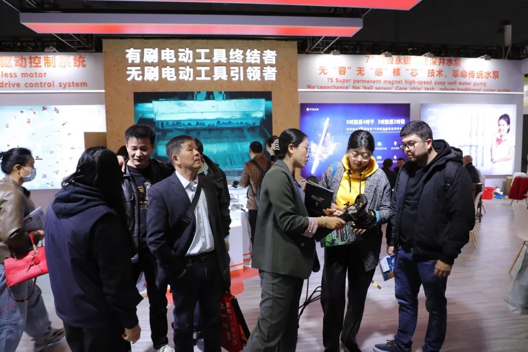 本次展会,华频进行了前所未有的资源投入。展位面积超100平方米,布置有展示区、体验区、洽谈区等,各类工具产品一应俱全。首先映入眼帘的是华频产品展示区。本次华频展台主要由三大区域组成:高压无刷变频控制系统展示区、无刷电动工具展示区、永磁高速深井水泵展示区,展区内大批产品,吸引了众多参观者驻足体验。