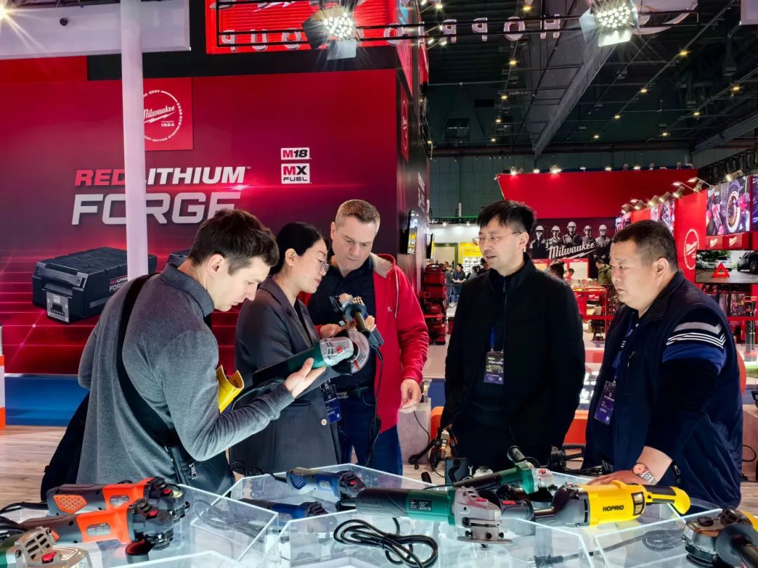 雷伦无刷工具展示区位于中心区。在这里观众可以直观了解雷伦工业级、雷原专业级无刷角磨机、直磨机、磁力钻等丰富的电动工具产品,参与互动体验,现场人员络绎不绝,热闹非凡。