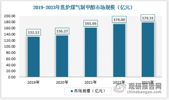 焦炉煤气制甲醇经过十余年的不断探索与改进,已发展成为我国重要极具竞争力的甲醇生产产业之一。焦炉气制甲醇装置2023年投产较多,较2022年提升3.95个百分点。2023年国内焦炉煤气制甲市场规模约为179.31亿元,具体如下: