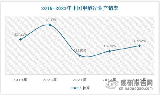 2023年我国甲醇的产销率是115.92%,从整个甲醇行业来看,国内甲醇市场存在着供不应求的现象,对进口甲醇产品依赖度较高。