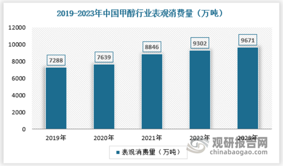 过去10多年来,我国的甲醇行业经过了高速发展,一方面下游应用产品的自给程度不断提升,带来了原料需求的快速增长,同时MTP/BDO项目的不断兴建亦拓展了大量的甲醇市场需求,我国甲醇市场快速扩充,需求持续增长。2023年甲醇表观消费量为9671万吨,同比增加4%,增长主要来自醋酸、MTBE和BDO。