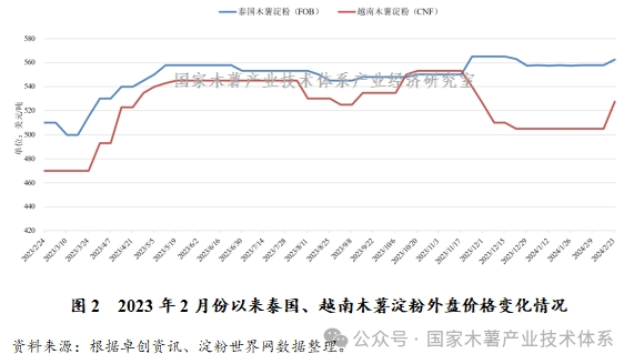 7. 泰国木薯干片和木薯淀粉市场价格小幅回升,越南木薯淀粉市场价格小幅回升,国内木薯淀粉市场价格总体稳定。
