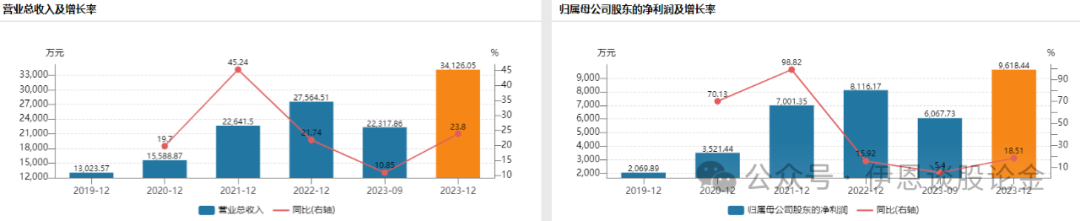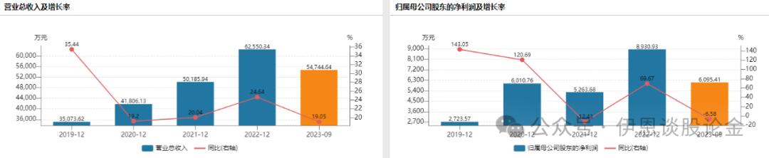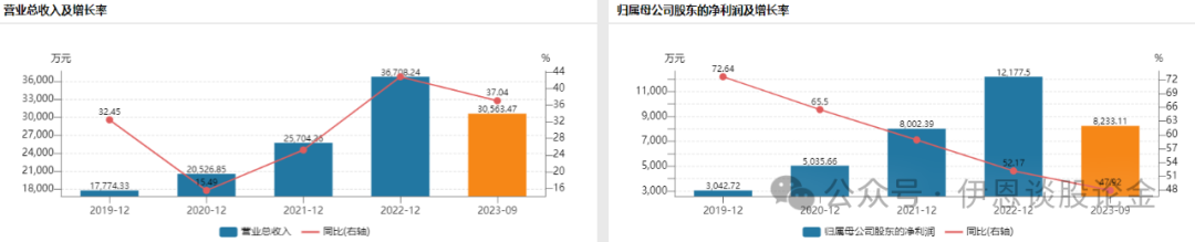 从业绩表现上来看,2019-2022年营业收入和净利润高速增长,净利润增速在降缓,但仍然保持超50%的高水平。公司2023年业绩预告,净利润将同比增长14.97%-43.71%。