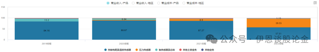 公司以领先的智能传感器技术为核心,专业致力于为客户提供温度、压力、湿度、空气等多维感知和控制解决方案的一流智能传感器制造商,主要产品包括压力传感器、氧传感器、温度传感器等, 主要客户有比亚迪、上汽集团、美的集团、华为、三星、GE等诸多国内外知名企业。从产品结构上来看,2022年主要收入构成为热敏电阻及温度传感器(57.51%)、压力传感器(39.55%),合计贡献了超97%的收入。