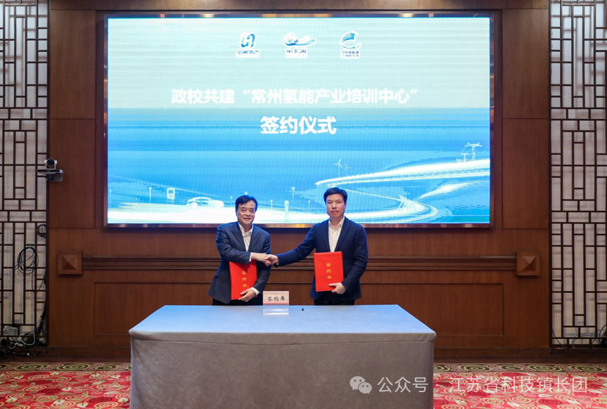 徐俊与杨劲松签约共建“常州氢能产业培训中心”。常州氢能产业培训中心的成立,将与常州新能源产教联合体内院校共建氢能相关学科专业,建立健全人才培养培训机制,壮大氢能创新研发人才群体,实现行业产业与学科专业深度融合。依托龙头企业整合行业优质创新资源,布局产业创新中心、工程研究中心、技术创新中心等创新平台,为氢能产业关键技术开发和工程化应用提供智力支撑。协助常州氢湾企业开展氢能科学和技术国际联合研发,推动氢能全产业链关键核心技术、材料和装备创新合作。此外,针对西太湖科技产业园氢能产业企业特征和岗位需求实施“订单式”高素质技术技能人才培养、就业创业培训,政校企共建技术服务和产品研发中心、技能大师工作室、创新创意创业教育中心等协同育人平台,形成“专业共建、课程共担、教材共编、师资共培、基地共建、人才共育”的协同育人体系,共同谱写常州氢能产业新篇章。