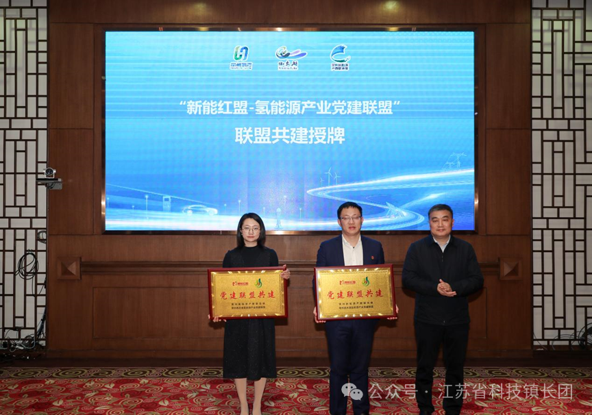 活动现场,席海涛为“新能红盟-西太湖氢能源产业党建联盟”结对共建授牌,常州西太湖氢能源产业党建联盟党组织负责人陈丹蕾和常州工业职业技术学院机械与交通学院党总支书记陈晓敏代表双方党建联盟领取牌匾。双方将以党建为引领,用党建链串起教育链、人才链、创新链、产业链,在机制建设、资源整合、沟通交流、人才引育、合作共赢等关键环节形成合力,赋能常州“新能源之都”建设。