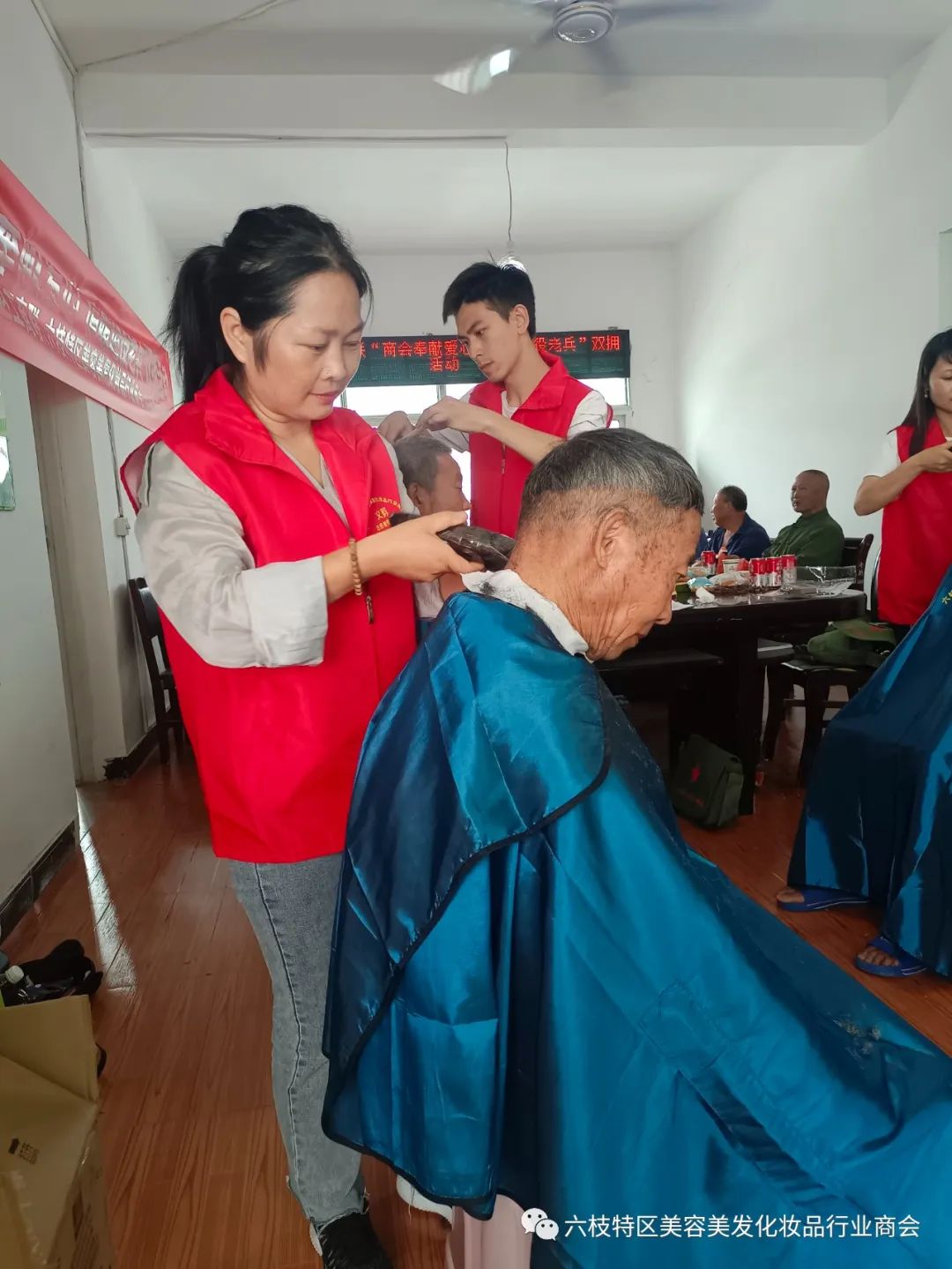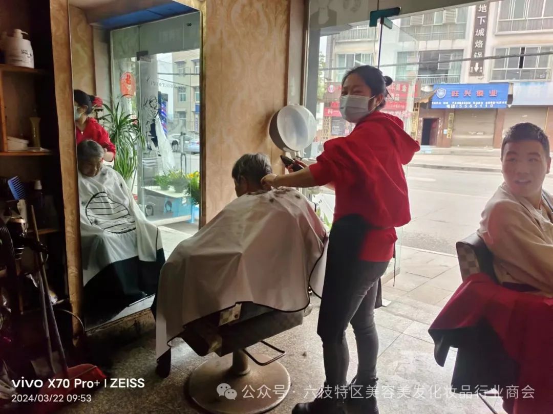六枝特区美容美发化妆品行业商会副会长朱义琼,她店开展为高龄老人和脱贫户低保户人群免费理发,请各位行业精英向她学习,多为社会做贡献、为美容美发行业争光忝彩。