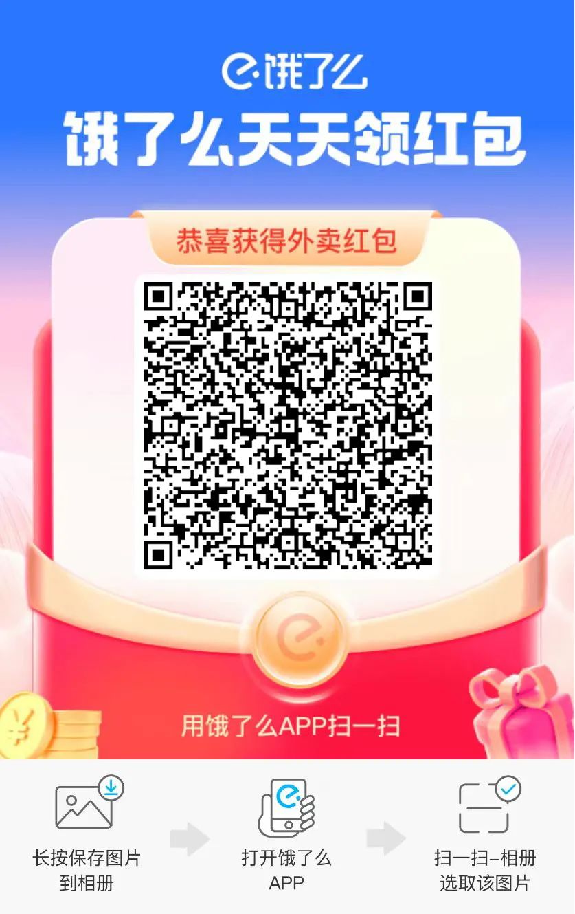 吃饭时间到,保存二维码,每天扫码领取红包,