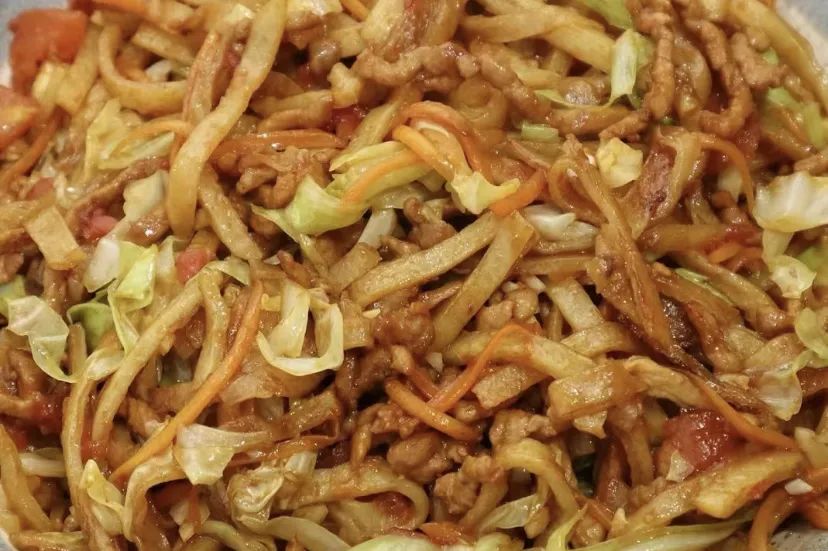 主食:甘蓝肉炒饼、甘蓝鸡蛋炒饼