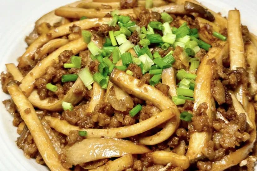 菜品:肉酱杏鲍菇、千叶豆腐炒培根