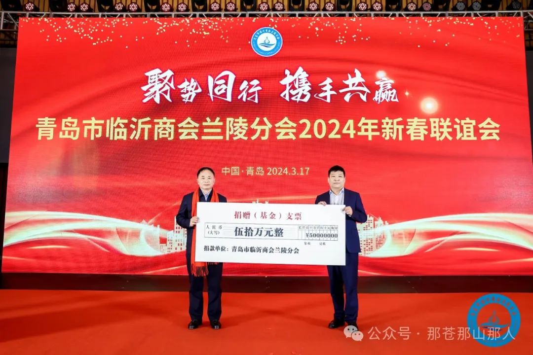 2024年兰陵分会在兰陵县委县政府的关心和支持下设立了爱心通道“兰陵慈善总会驻青岛联络处”。现场,兰陵慈善总会副会长王玉纯宣读兰陵县慈善总会关于成立“兰陵慈善总会驻青岛联络处”的批复!苏妮娜部长和兰陵慈善总会会长徐安军为兰陵慈善总会驻青岛联络处揭牌,青岛市临沂商会兰陵分会现场认捐基金50万元,用于救助家乡困难群众。