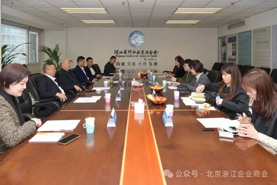为深入贯彻落实省委提出的“地瓜经济”提能升级“一号工程”,积极响应省委“新春第一会”的号召,共同推进三个“一号工程”,充分展现京津冀蒙浙商的家国情怀与报效桑梓的初心使命,北京浙江企业商会联合津冀蒙地区浙商组织开展商讨回乡考察投资活动事宜。3月20日,北京浙江企业商会代理秘书长孙国英一行走访河北省浙江企业联合会,受到河北省浙江企业联合会秘书长戴留金等热烈欢迎,天津市浙江商会秘书长刘蓉,服务中心主任谢冰受邀参会。浙江省驻京办群工处刘佶松,北京浙江企业商会戴艳、赵妍秋惠参加了走访交流活动。